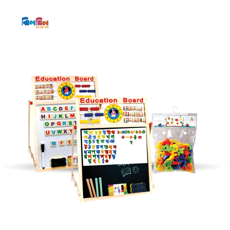 মাঝারি সাইজের এডুকেশন কম্ব 45cm x 35cm কাঠের এডুকেশন বোর্ডের একপাশে আছে হোয়াইট বোর্ড এবং অন্যপাশে ব্ল্যাক বোর্ড। এটি আপনার সন্তানের প্রারম্ভিক শিক্ষার জন্য অপরিহার্য। সাথে থাকছে ২৬টি ইংরেজি বর্ণমালা সেট, ১০টি ইংরেজি সংখ্যা সেট, ৫০টি বাংলা বর্ণমালা সেট, ১০টি বাংলা সংখ্যার ২টি সেট (মোট ২০টি), এবং ১০টি গাণিতিক প্রক্রিয়া চিহ্নের সেট। শিশুদের অক্ষর জ্ঞান, সংখ্যা গণনা এবং সহজ গণিতের ভিত্তি তৈরির জন্য এটি একটি চমৎকার খেলনা-সরঞ্জাম।